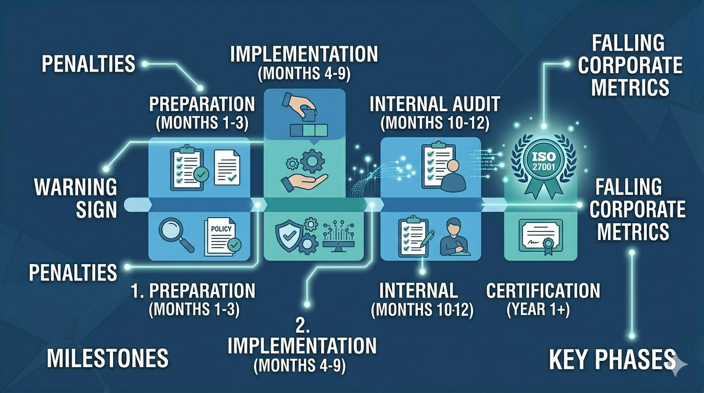 A realistic breakdown of the ISO 27001 certification timeline for small, medium, and large Indian organisations — with key milestones and time-saving tips.