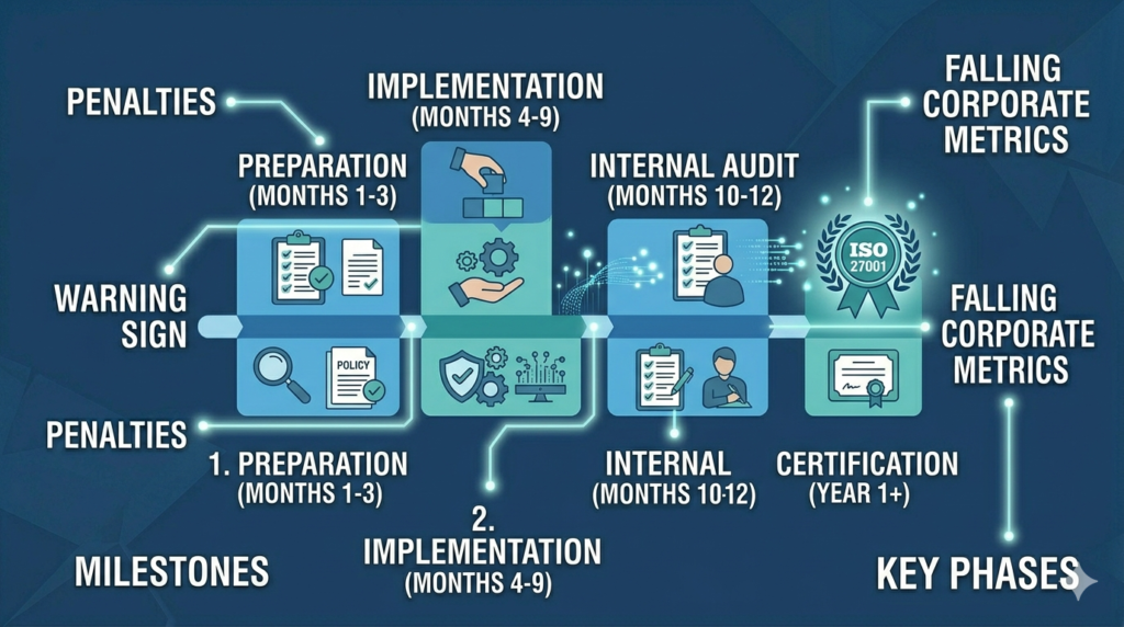 A realistic breakdown of the ISO 27001 certification timeline for small, medium, and large Indian organisations — with key milestones and time-saving tips.
